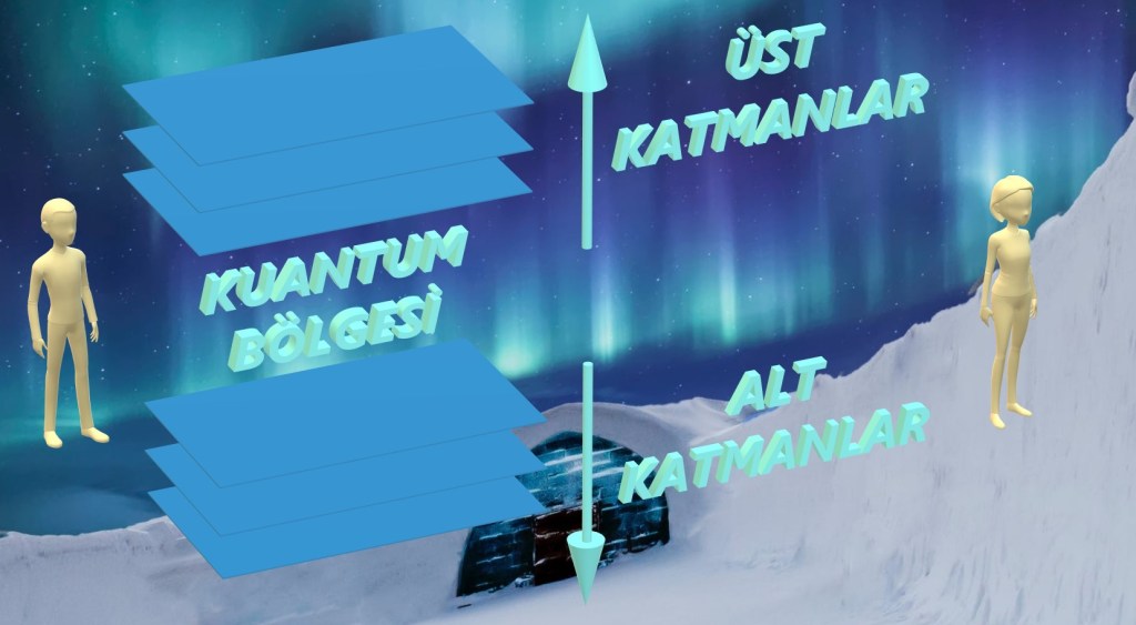 En üst katmanlar daha basittir ve bizim yaşadığımız, deneyimlediğimiz boyutu oluşturmaktadır. Bu katmanlarda Newton fizik yasalarını ve benzeri bazı kanunları gözlemliyor ve kullanıyoruz. Alt katmanlara doğru indikçe moleküller ve sonra da atomlara ulaşırız. Biraz daha aşağıya doğru indiğimizde ise atomu oluşturan proton, nötron ve elektron gibi temel bileşenler karşımıza gelmektedir. Bunun bir alt seviyesi ise kuantum bölgesidir. Yani kuantum teorisinin ilgi alanı olan bölge. Bu bölgede ise kuarklar, nötrinolar, muonlar, bozonlar, fotonlar gibi parçacıklar (diskretize bileşenler) ve bu parçacıklar arasındaki ilişkileri kuran alanlar ve katmanlar mevcut. Ayrıca, kuantum bölgesinin “zaman” dediğimiz kavramla da yakından bağlantısı olduğunu zaten biliyoruz. Kuantum bölgesi ya da eğer gerçekten var ise kuantum ötesi seviyelerle ilgili olarak en çok merak ettiğim konulardan biri, bu seviyelerdeki parçacıkların ve onların yer aldığı veya etkileşimde olduğu alanların (manyetik alan, elektrik alan vs…) daha da somut bir şekilde ve bugünkünden daha doğru matematiksel eşitliklerle ifade edilebilip edilemeyeceği. Bilim yol almaya ve gelişmeye devam ettikçe bunu hep birlikte göreceğiz. Kuantum bölgesinin altına doğru indikçe daha derinlerde daha farklı mekanizmaların yer alıyor olması ve teorisi henüz ortaya konulmamış bir fizik olması ihtimali kulağa ilginç geliyor değil mi? Kuantum ötesi fiziği, belki de metafizik bilimi ile daha kısa sürede keşfedeceğiz. “Metafizik” ise basitçe fizikten temel alan fizik ötesi baypas hattıdır. Yani metafiziğin özeti budur. Bununla birlikte, henüz adı konulmamış olan bu yeni fizik de gerçeklik algımızı tekrar değiştirecek ve kuvvetle muhtemel, insanların gerçeklik algılamasını farklı bir noktaya getirecektir.